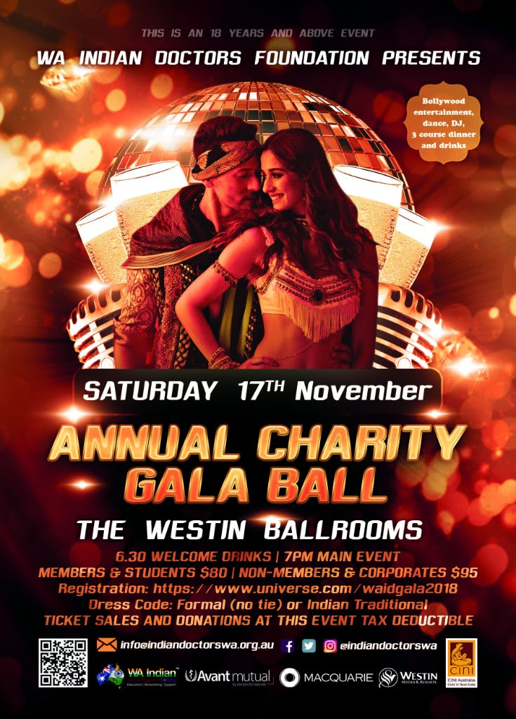 The Westin 480 Hay St, Perth, Western Australia, AustraliaInvitation to the Annual Charity Gala Ball - Fundraising Dinner and Dance 2018 WA Indian Doctors Foundation would like to extend to you a warm invitation to attend this much awaited annual fundraising Bollywood themed charity event that promises to be our major blockbuster event of the year.Annual Charity Gala Ball - Fundraising Dinner and Dance Saturday…