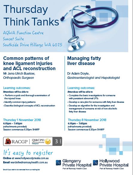 AQWA Function Centre Southside Drive, Hillarys, WA, AustraliaPresented by Gastroenterologist and Hepatologist Dr Adam Doyle. Understand investigations for a patient with persistent abnormal LFTs and learn the latest management strategies available for those at risk of NAFLD