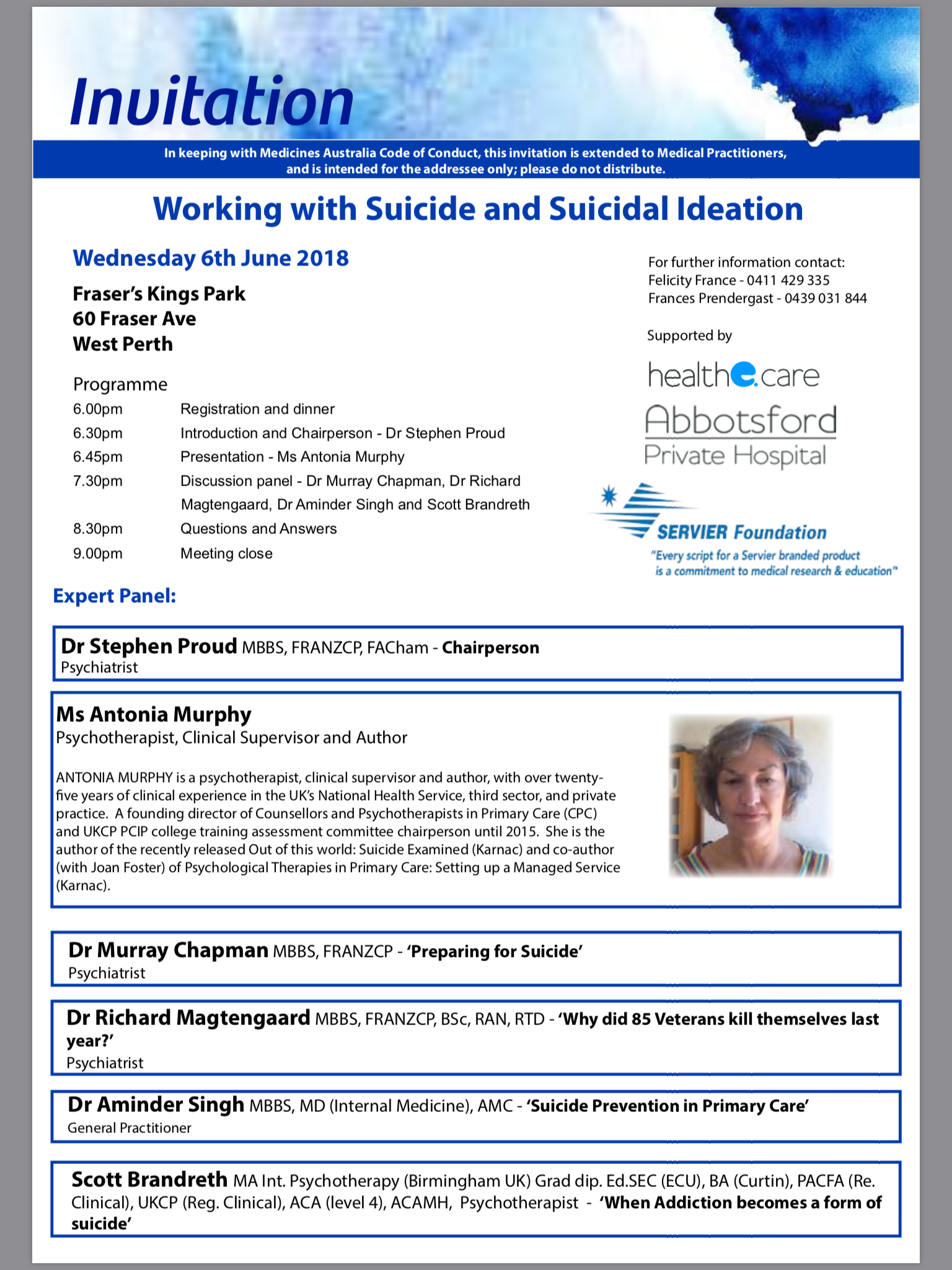 Come join the panel of mental health experts share their knowledge around suicide and suicidal ideation. Attendees at this meeting will be a mix of Psychiatrists and GPs so the…