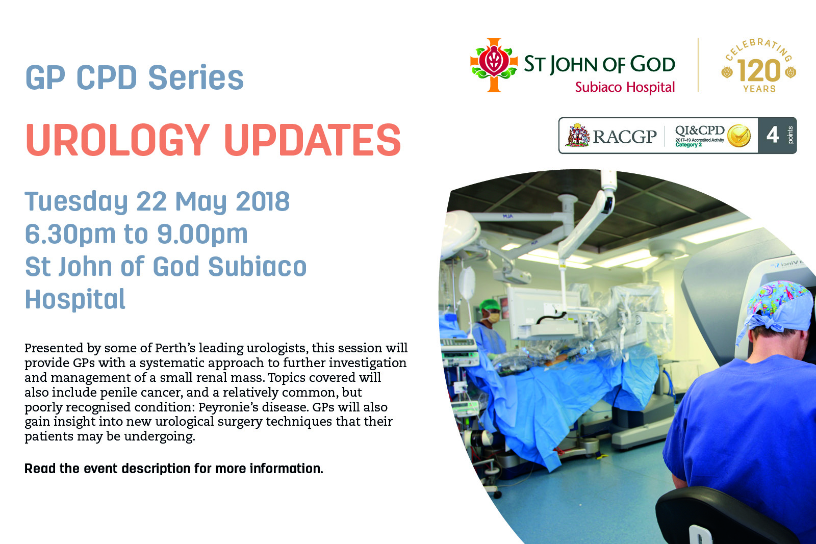 Presented by some of Perth's leading urologists, this education session will cover some urology topics of interest and relevance to GPs. Most GPs would be aware that the majority of…