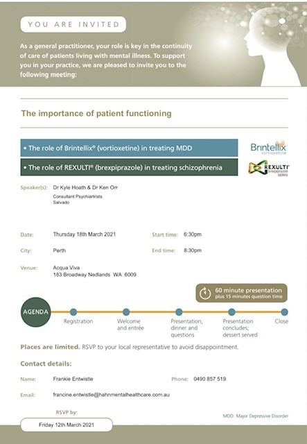 This event aims to engage GPs on a range of cardiovascular conditions that are commonly encountered in general practice, such as managing patients with heart failure under the new Medicare Benefits Schedule (MBS) guidelines, prevention and management of thrombotic syndrome and current and future management of obstructive sleep apnoea (OSA). The evening includes information on…