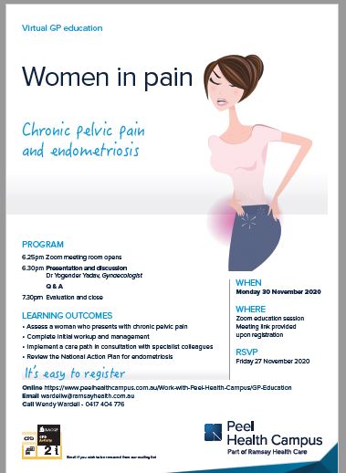 via Zoom Western Australia, AustraliaChronic pelvic pain and endometriosis. Presented by Dr Yogender Yadav, Gynaecologist