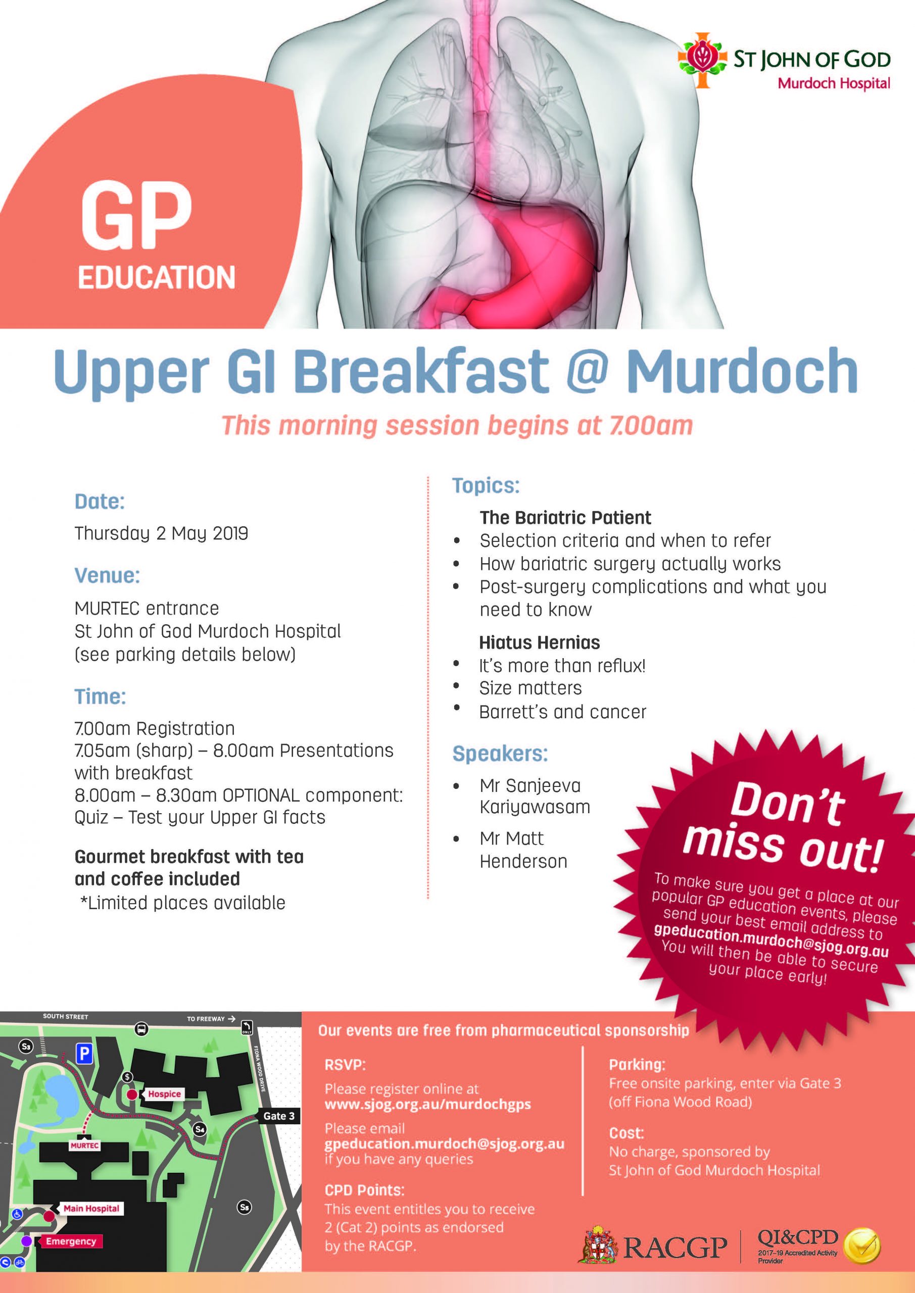 Topics: • How bariatric surgery works, what can go wrong and what to look for post surgery • Reflux; Barrett’s oesophagus or cancer Presenters: Sanjeeva Kariyawasam Matt Henderson For information…