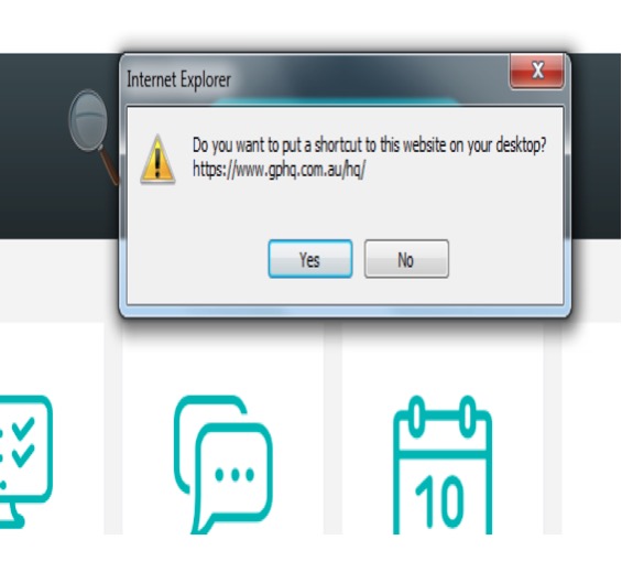 To Download GPHQ to your desktop in Internet Explorer , right click the mouse on the webpage and scroll down to “Create shortcut”. A window will pop up, click “Yes” and the GPHQ icon will appear on your desktop.